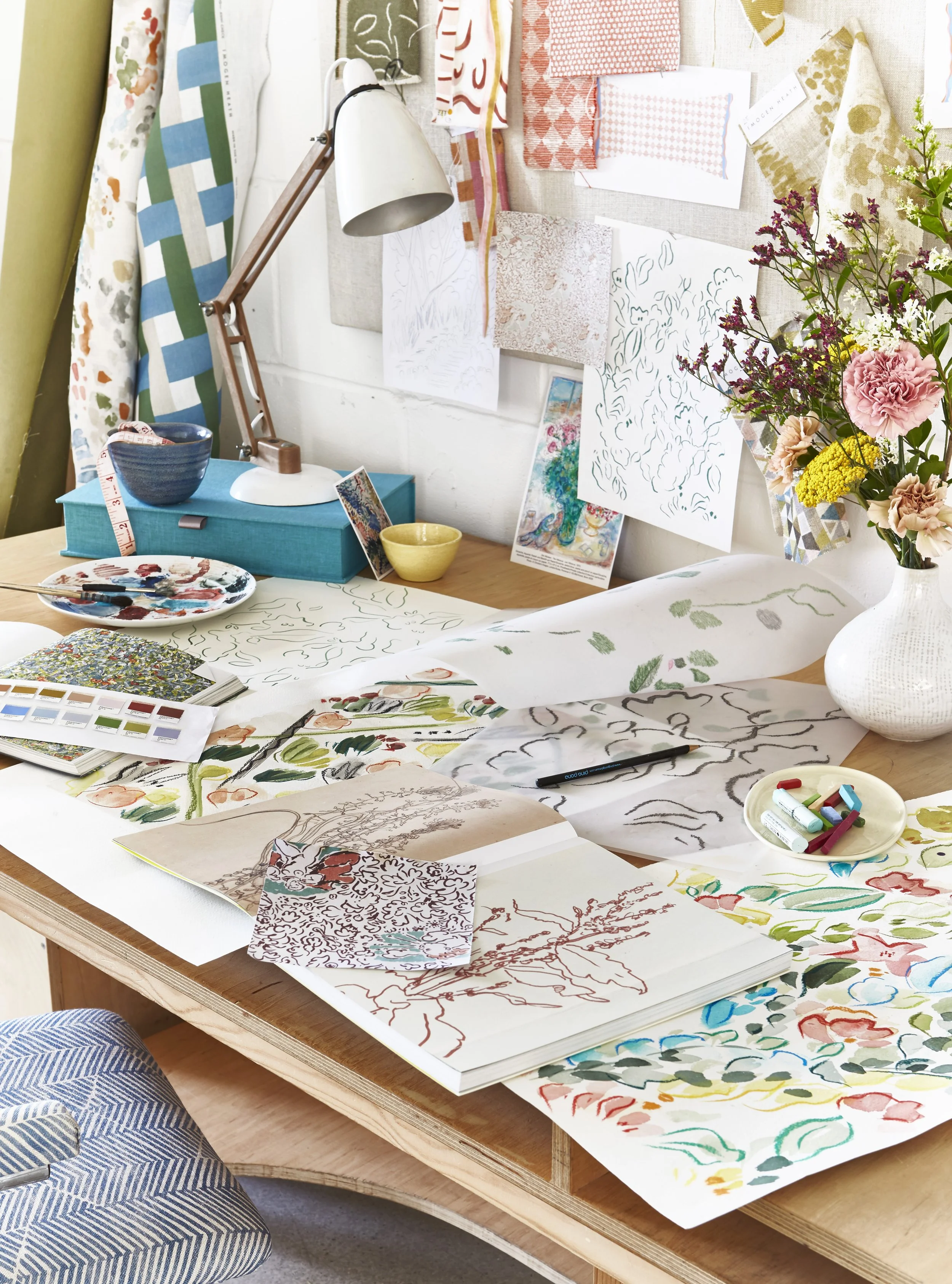 Florals have long been at the heart of interior design, but we’re especially drawn to interpretations that feel expressive, painterly, and human. Our fabric collections, such as Abigail, Sarah Louise and Evergreen, were all born from original artworks, hand-painted studies of natural forms, later translated into embroidery and print.